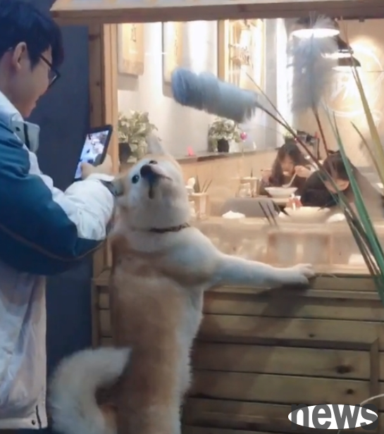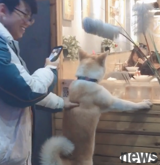 This kind of netizen found it more interesting, so he took out his mobile phone to take pictures of the dog, and even took the opportunity to touch the dog's back. The dog felt that someone was touching it, so it waggled its tail and turned around and stole it back. Its suspicious little eyes also made netizens laugh. The dog's eyes seemed to be saying, "Who are you? Do I know you? Why are you disturbing me from peeping at beautiful women!".