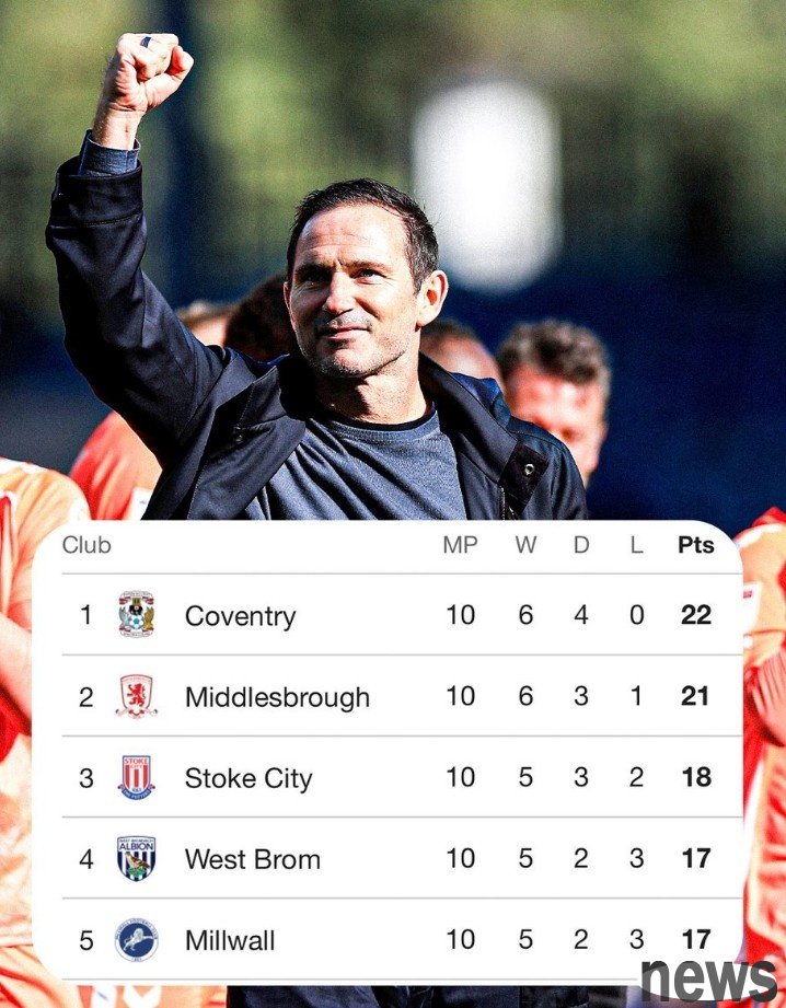 Lampard coached Coventry to defeat Blackburn this round, unbeaten in 10 games this season and ranked first in the British Championship