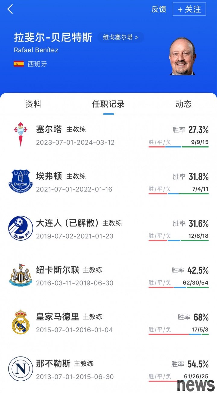 Benitez is 65 years old and has been out of work since leaving the Celta Vigo coaching position in March last year. Benitez has previously coached giants such as Liverpool, Inter Milan, Chelsea, Naples and Real Madrid, and has many honors, including 2 La Liga championships, 1 Champions League championship, 2 Europa League championships and 1 Club World Cup championship. In addition, Benitez also served as the Dalian coach from 2019 to 2021.