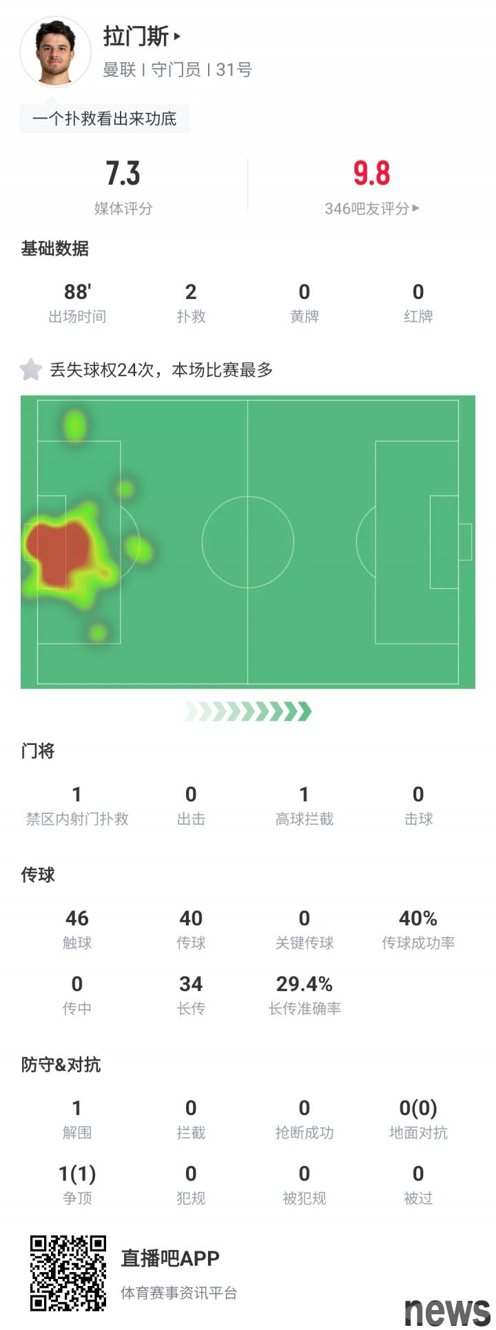 In the 7th round of the Premier League, Manchester United beat Sunderland 2-0, and Manchester United goalkeeper Lamons made a clean sheet for his debut, performing amazingly! After the game, he won a 9.8 rating from a bar friend.
