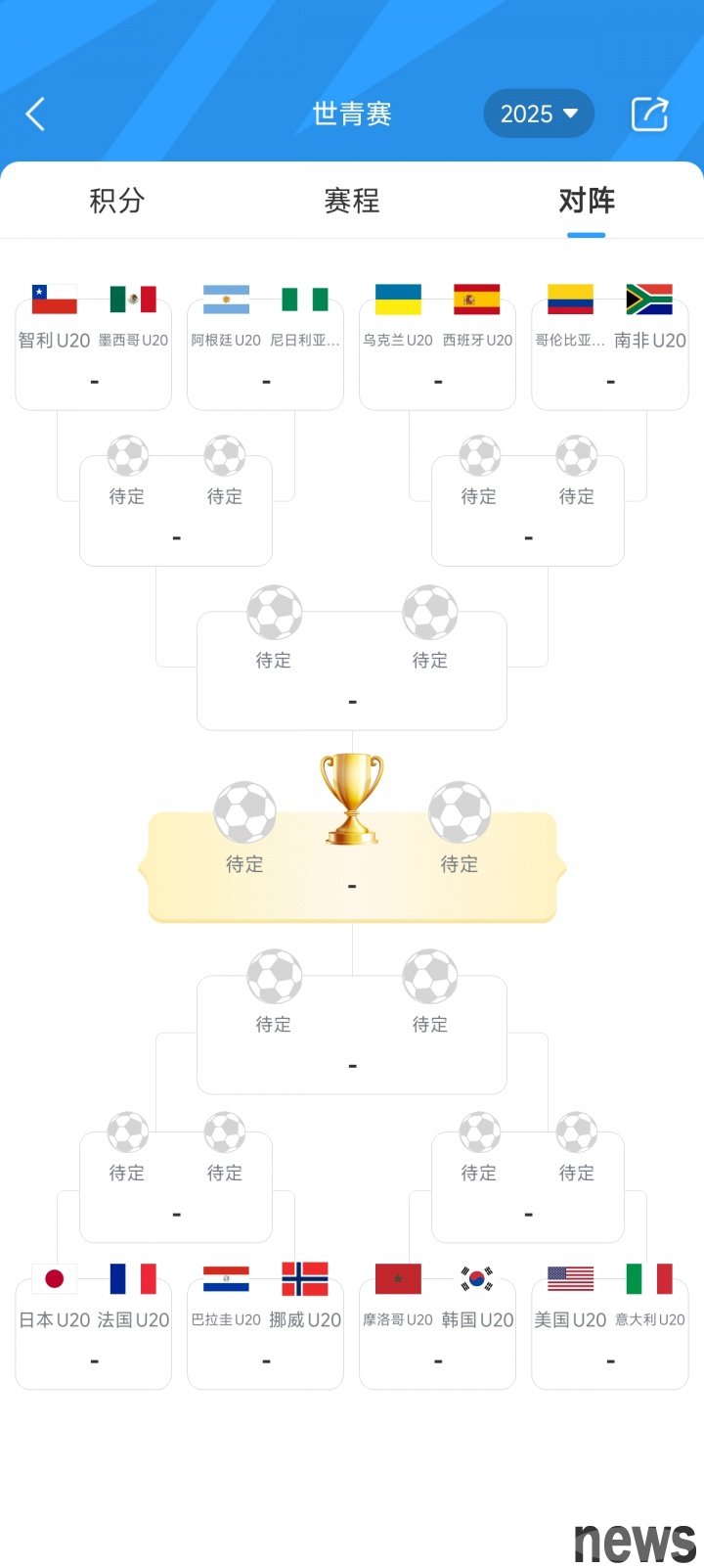 World Youth Championship (U20 World Cup) has all been released, and the matchup situation has been announced. The top 16 competition will start from October 8.